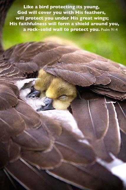 Psalm 91:3 ESV “God will save you from hidden dangers and from deadly diseases. (Other translations reference the hunter’s net and the destructive plague, snare of the fowler and moral pestilence, every trap and deadly disease.) 4 You can go to him for protection.    He will cover you like a bird spreading its wings over its babies. You can trust him to surround and protect you like a shield.”